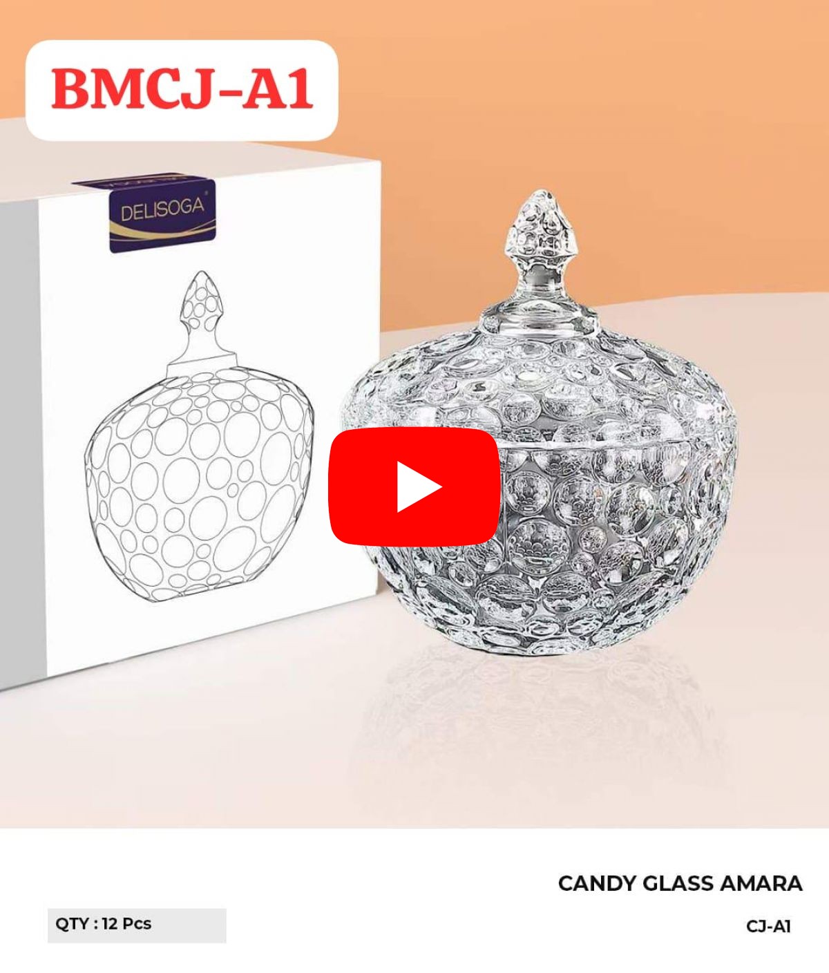 CANDY GLASS AMARA BMCJ-A1 DIAMETER 16CM (TINGGI 10.5CM TANPA TUTUP) ISI 12 PCS