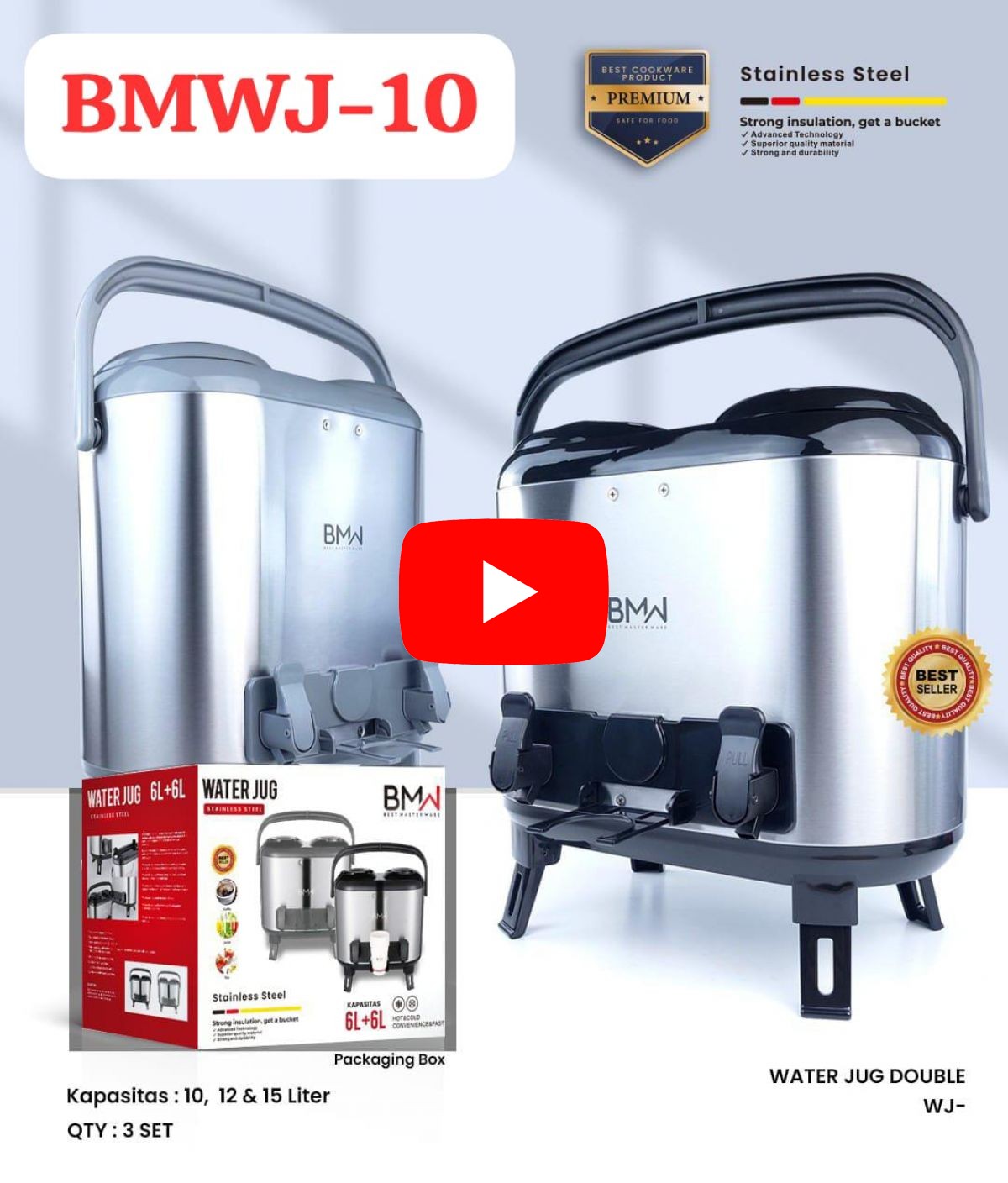 DOUBLE DISPENSER WATER JUG BMWJ-10 SIZE 10 LITER ISI 3 SET