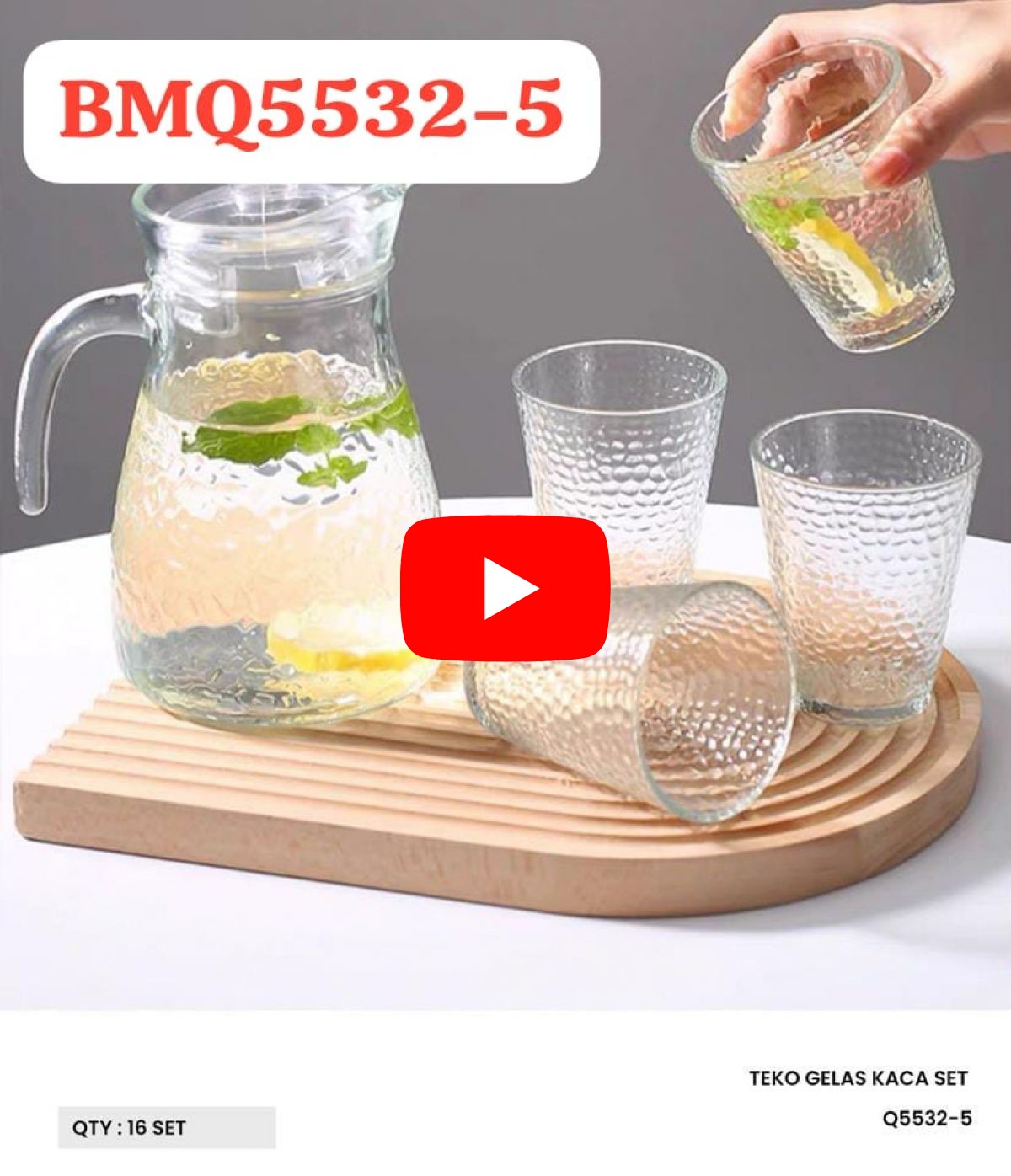 TEKO GELAS KACA SET BMQ5532-5 ISI 16 SET