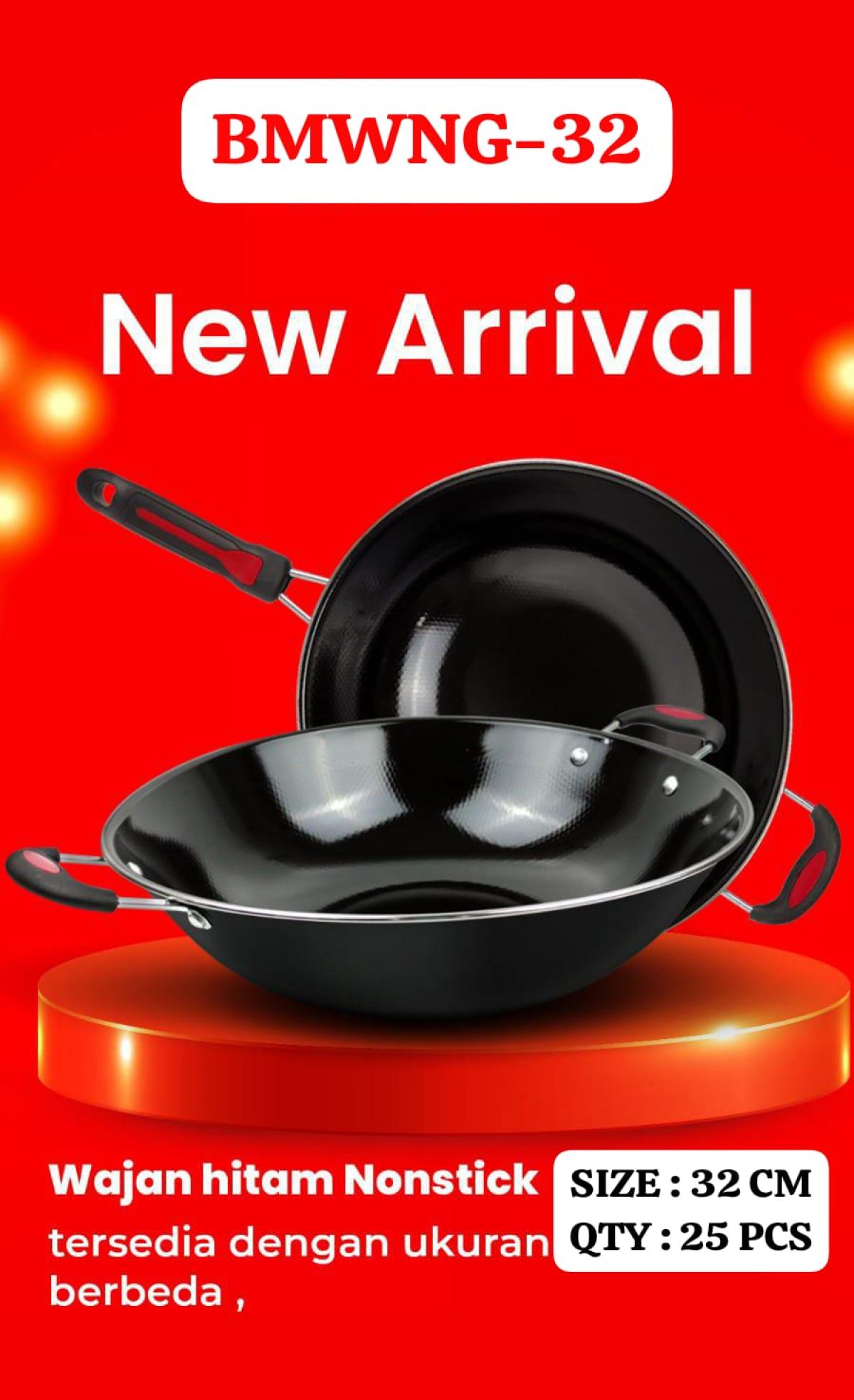 WAJAN ENAMEL HITAM KUPING BMWNG-32 SIZE 32 CM ISI 25 PCS