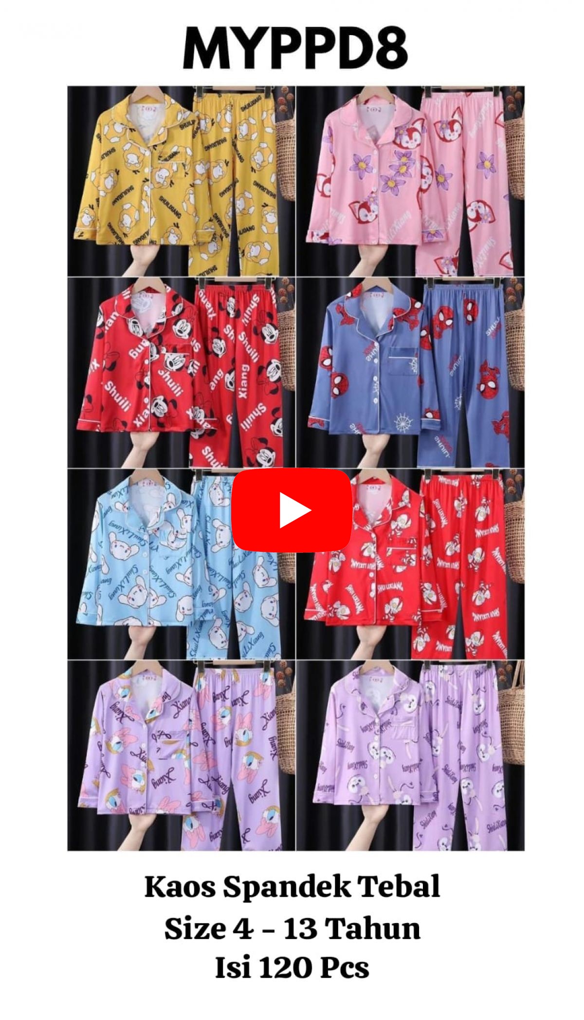PIYAMA MYPPD8 PP KAOS SPANDEK TEBAL SIZE 4 - 13 TAHUN ISI 120 PCS