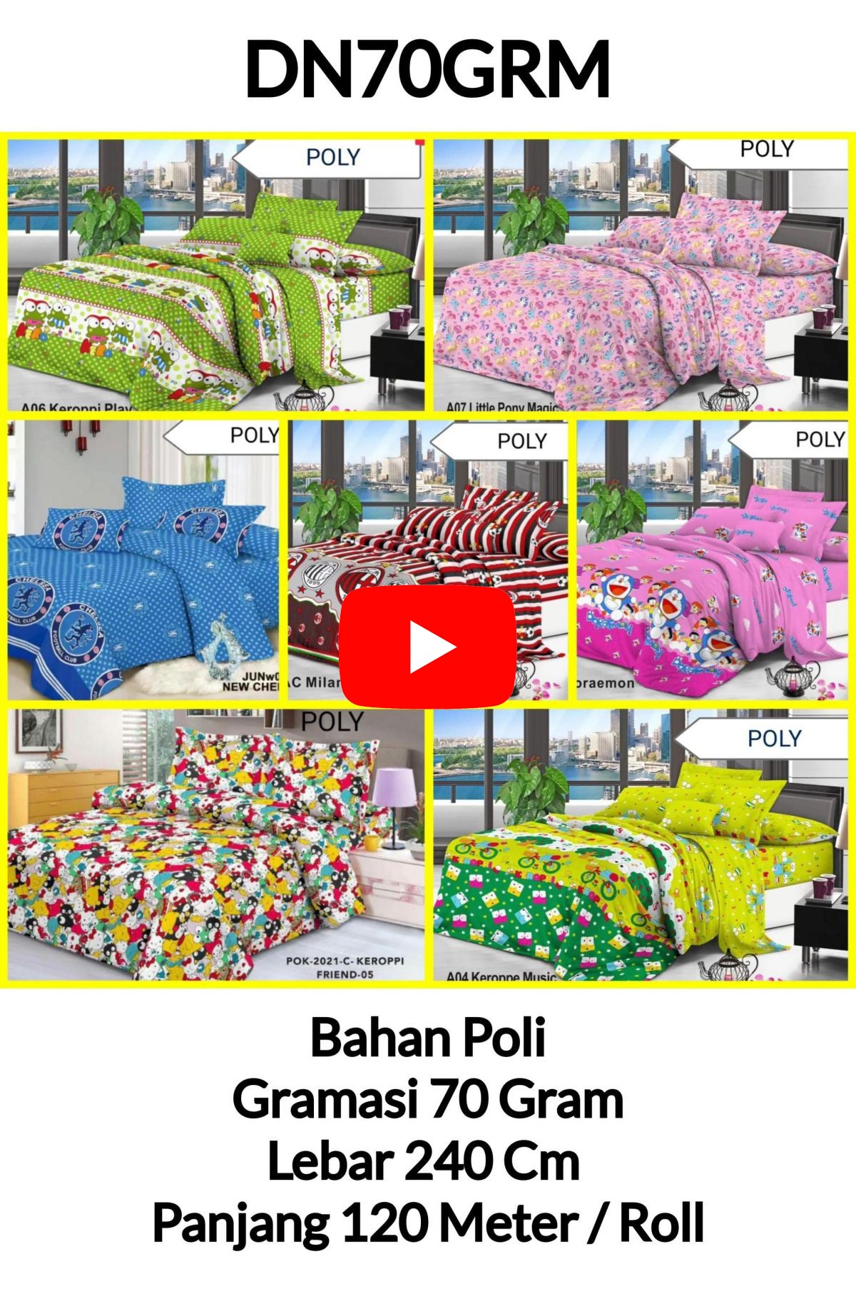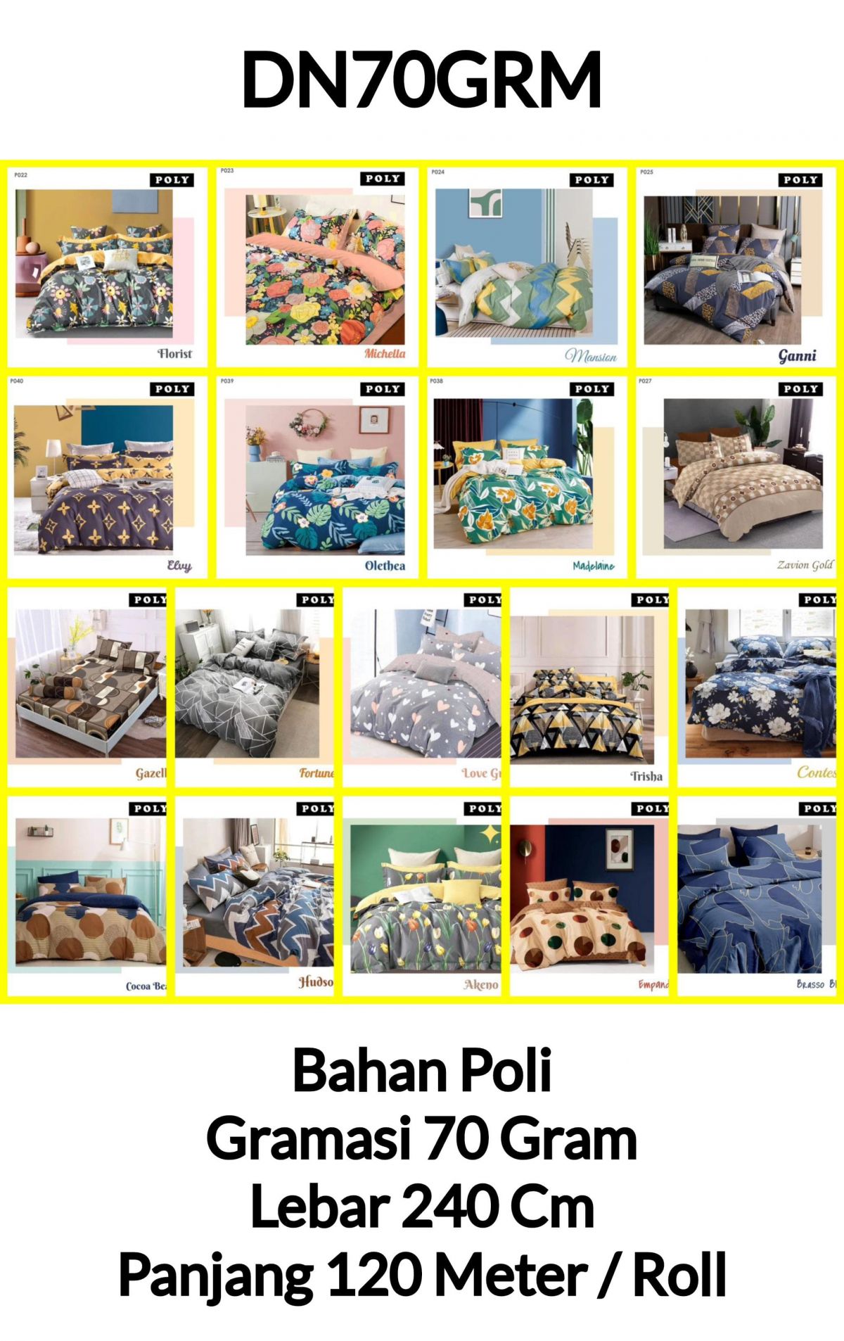 BAHAN SPREI POLI DN70GRM LEBAR 240CM GRAMASI 70 GRAM PANJANG 120 METER