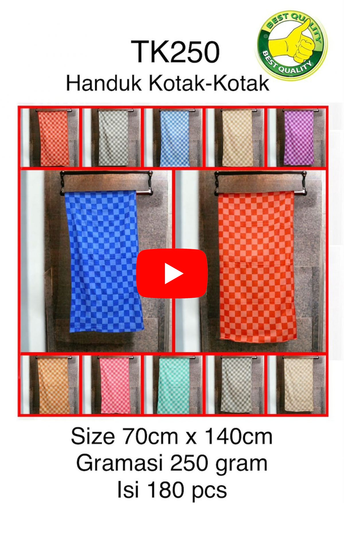 HANDUK KOTAK KOTAK TK250 SIZE 70CM * 140CM GRAMASI 250GR ISI 180 PCS.