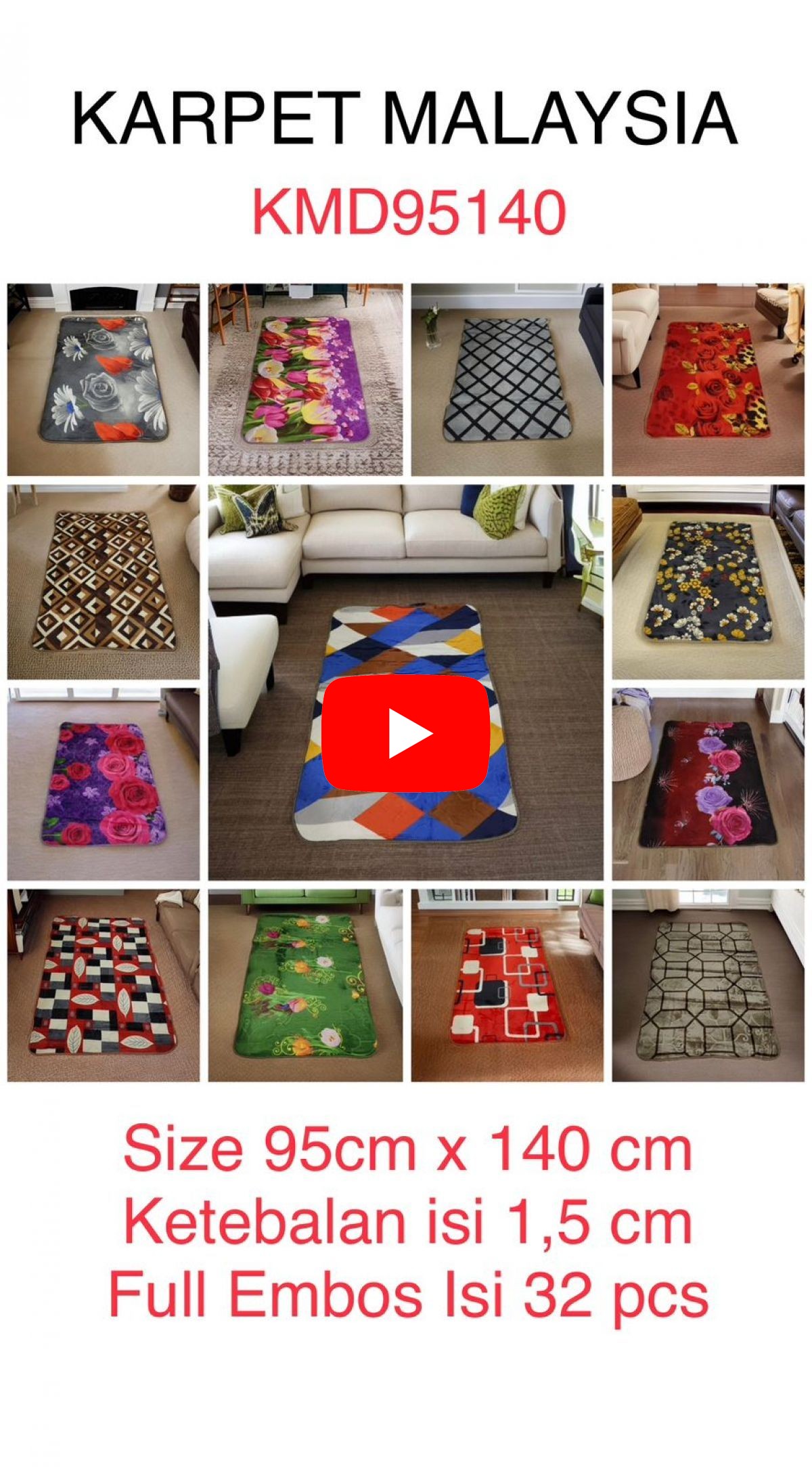 Karpet Malaysia Size 95CM * 140CM Ketebalan Isi 1,5CM Full Embos ISI 32 PCS
