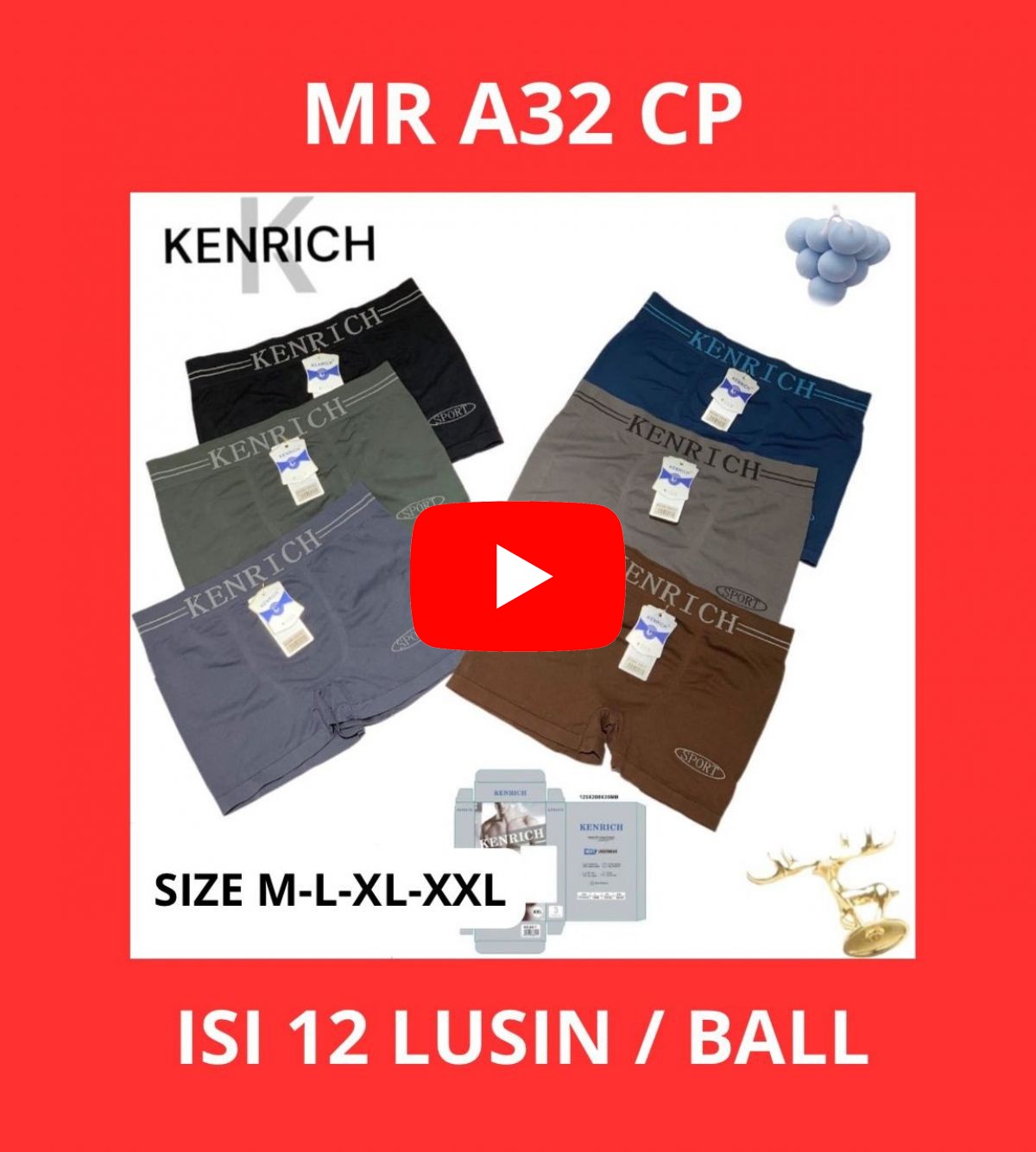 BOXER MR A32 CP BAHAN RAJUT SIZE M - L - XL - XXL ISI 12 LUSIN