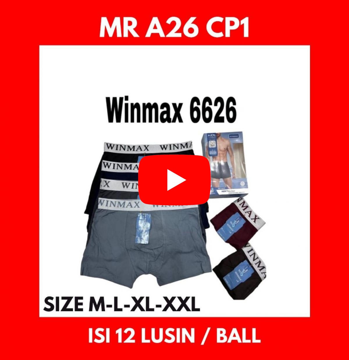 BOXER WINMAX MR A26 CP1 SIZE M-L-XL-XXL ISI 12 LUSIN