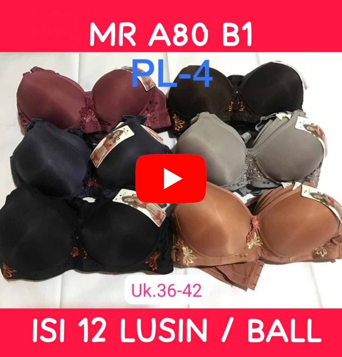 BH MR A80 B1 TANPA KAWAT SIZE 36 - 42 ISI 12 LUSIN